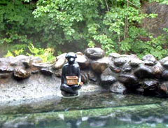奥薬研温泉にある有名な無料の露天風呂です。浴槽は一つで15〜6人が入れる広さです。脱衣所は一応男女別?に分かれています。渓流沿いに造られており、周りの雰囲気はなかなか良いものがあります。名前の由来となった黒光りする河童も鎮座しています。 | ![]() |