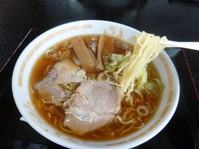 到着いたしました「ラーメン(小)」550円です。予想どおり、小といっても仙台あたりじゃ普通の一杯分あるかな。豚ガラと煮干しを使ったスッキリスープは「うんまい!」の一言。これは良いです、流石、この地区でも負けない味ですね。