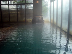 内湯はお風呂がたくさんありますが、一番いいのは大浴槽です。20人は入れる大きなものでそこへ源泉が大量に注がれています。お湯は薄く白濁気味のもので少しの金気臭がします。 | ![]() |