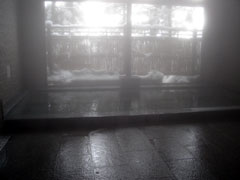 やや浅めの浴槽に無色透明のお湯が注がれ掛け流しになっています。お湯はかなりぬめり感がありぬるぬるする感じがして感触はとてもよいです。湯口付近では焦げ硫黄臭も少し感知できます。湯温は源泉投入が少なく、かなりぬるめになっています。もう少し熱めだと入浴感も増していいのですがねえ。湯口付近ではかなり良好な硫黄臭が香り、源泉の素性はかなり良さそうなだけにちょっと惜しいです。白い湯花がちらほらと舞っています。(2005/12/23/PM1:40) |