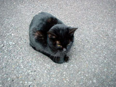 玄関の脇に黒い子猫がいました。あんまりかわいいのでつい写真を撮ってしまいましたが、全然逃げませんでした。それにしてもかわいいもんですね。どうでもいいですが私は犬派ではなく、猫派なのです。(笑)(2003/12/13/PM2:30) |