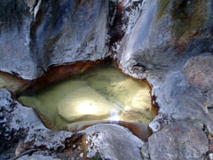観光コース中にこの野湯はあり、観光客がやってきますので素っ裸でこの野湯に入るのは少々抵抗があります。ただここまではやってくる人が少ないので助かります。隣に流れている川は白濁しており湯温も50度C以上はある温泉川でしたが、流石に熱過ぎて入ることはできませんでした。冬場は入れるのかもしれません。(2007/10/06/PM0:30) | ![]() |
