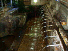 | 右の写真は打たせ湯です。豪快にお湯が落ちてきます。なかなか壮観な感じです。ここは打たせ湯ファンにお勧めします。(2000/06/23/PM7:00) | ![]() |