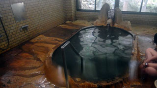 お湯はちょっぴり白濁気味に見えるもので、島根のほかの温泉地のお湯が全体的に「ぬる湯」が多いこともあり、とっても熱く感じます。食塩泉らしい力強さのあるお湯で脳天にガツンとくるほどではないですが、入浴感はかなりあります。小さな気泡もたくさん舞っていますが、身体にはほとんどくっつきません。